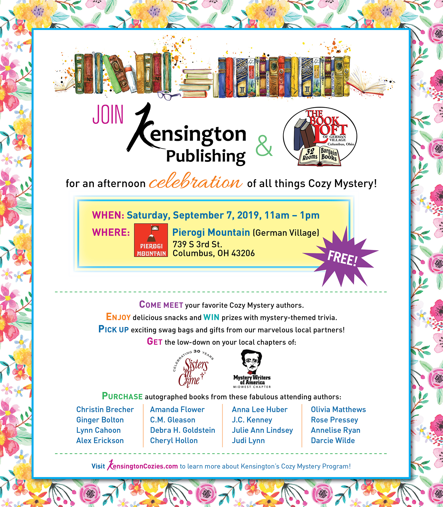 In other news, Kensington is hosting a Cozy Mini-Con on September 7 in Columbus, OH. I’ll be there signing copies of Death by Cafe Mocha. Check out the flyer for all the information!